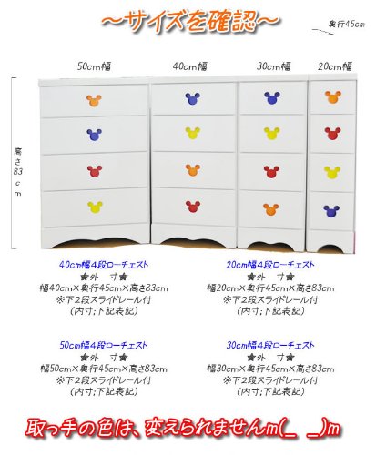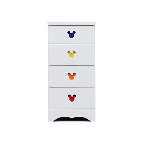 ディズニー家具すき間チェスト40cm幅4段リトルミッキーホワイト