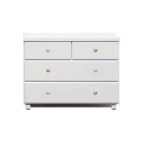 アルファタカバ ベビータンスシリーズ ブロッサムキャスター付きチェスト 80cm幅3段 ホワイト(クリスタルカラフル)