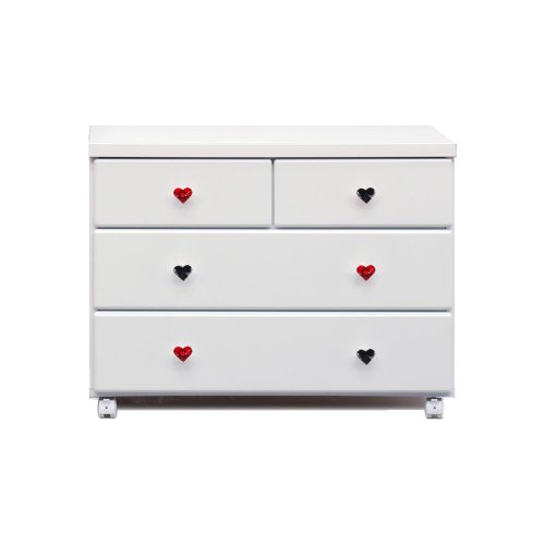 アルファタカバ ベビータンスシリーズ ブロッサムキャスター付きチェスト 80cm幅3段 ホワイト(ハートカラフル)