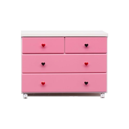 アルファタカバ ベビータンスシリーズ ブロッサムキャスター付きチェスト 80cm幅3段 ピンク(ハートカラフル)