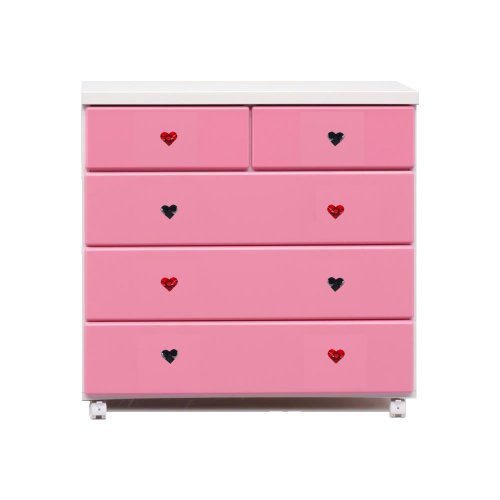 アルファタカバ ベビータンスシリーズ ブロッサムキャスター付きチェスト 80cm幅4段 ピンク(ハートカラフル)