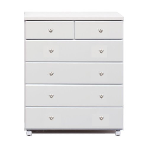 アルファタカバ ベビータンスシリーズ ブロッサムキャスター付きチェスト 80cm幅5段 ホワイト(ハートクリスタル)