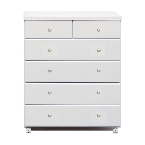 アルファタカバ ベビータンスシリーズ ブロッサムキャスター付きチェスト 80cm幅5段 ホワイト(クリスタルクリア)