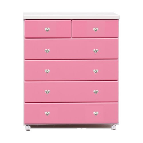 アルファタカバ ベビータンスシリーズ ブロッサムキャスター付きチェスト 80cm幅5段 ピンク(ハートクリスタル)