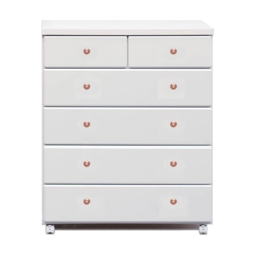 アルファタカバ ベビータンスシリーズ ブロッサムキャスター付きチェスト 80cm幅5段 ホワイト(クリスタルピンク)