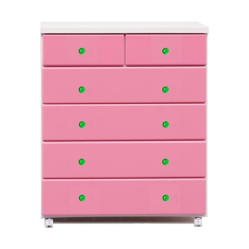 アルファタカバ ベビータンスシリーズ ブロッサムキャスター付きチェスト 80cm幅5段 ピンク(クリスタルグリーン)