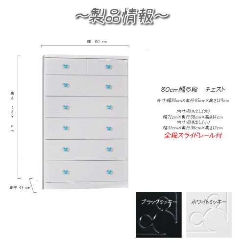 アルファタカバ ディズニー家具シリーズ セレクトミッキー 80cm幅6段ホワイト 取っ手スタンダードピンク