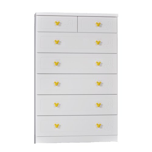 アルファタカバ ディズニー家具シリーズ セレクトミッキー 80cm幅6段ホワイト 取っ手スタンダードイエロー