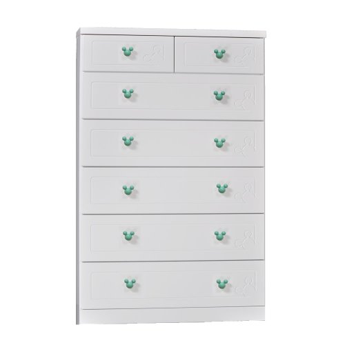 アルファタカバ ディズニー家具シリーズ セレクトミッキー 80cm幅6段ホワイト 取っ手北欧グリーン