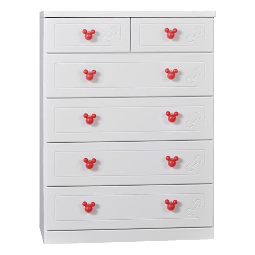 アルファタカバ ディズニー家具シリーズ セレクトミッキー 80cm幅5段ホワイト 取っ手スタンダードレッド