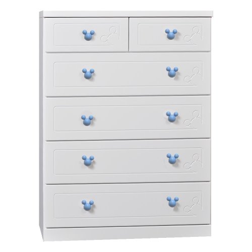 アルファタカバ ディズニー家具シリーズ セレクトミッキー 80cm幅5段ホワイト 取っ手北欧アクアブルー
