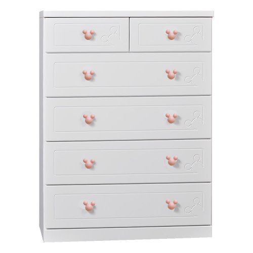アルファタカバ ディズニー家具シリーズ セレクトミッキー 80cm幅5段ホワイト 取っ手北欧パウダーピンク
