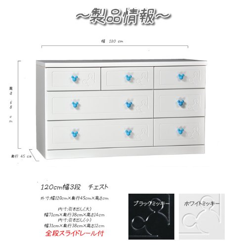 アルファタカバ ディズニー家具シリーズ セレクトミッキー 120cm幅3段ホワイト 取っ手北欧クリーム