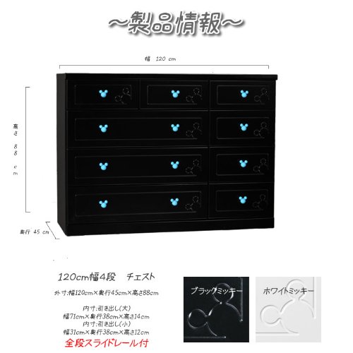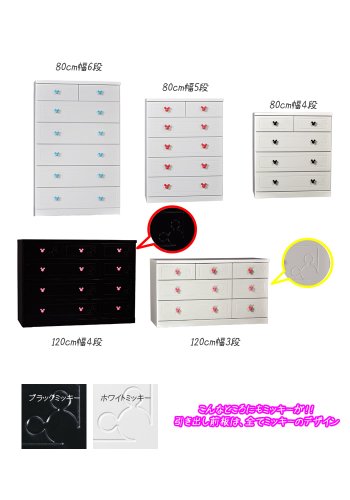 アルファタカバ ディズニー家具シリーズ セレクトミッキー 120cm幅4段ホワイト 取っ手北欧グレー