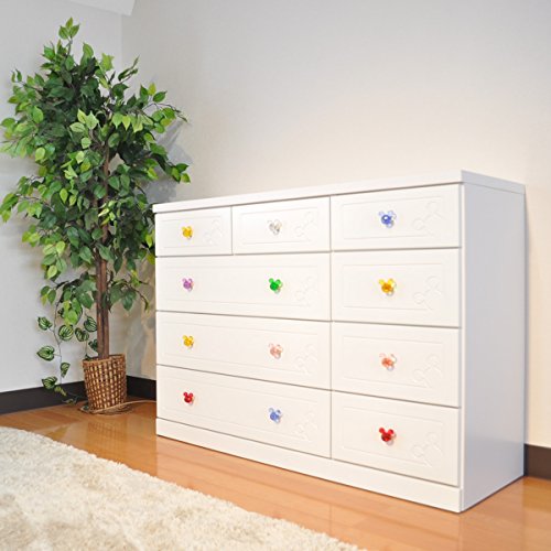 アルファタカバ ディズニー家具シリーズ セレクトミッキー 80cm幅5段ホワイト 取っ手ミッキーイエロークリスタル