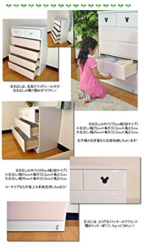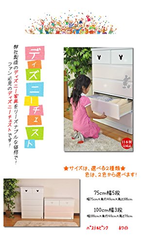 アルファタカバ ディズニー家具カラフルキッズチェストミッキー取っ手付き 100cm幅3段アンジェホワイト (オレンジ)