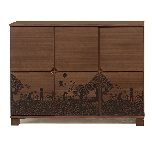 アルファタカバ お部屋行置きたいディズニー家具シリーズ スクエアくまのプーさん 120cm幅6枚扉 木製キャビネット/サイドボードブラウン