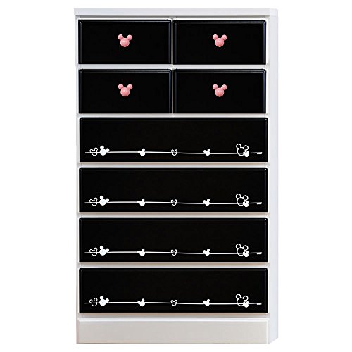 アルファタカバ ディズニー家具 キッズチェスト ミッキーチェスト 幅75cm 6段チョイスミッキー(ブラック)取っ手ピンク