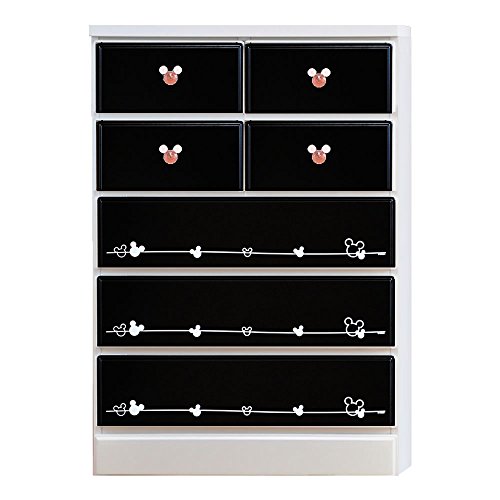 アルファタカバ ディズニー家具 キッズチェスト ミッキーチェスト 幅75cm 5段チョイスミッキー(ブラック)取っ手クリスタルピンク