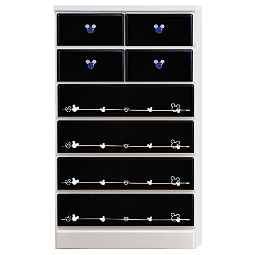 アルファタカバ ディズニー家具 キッズチェスト ミッキーチェスト 幅75cm 6段チョイスミッキー(ブラック)取っ手クリスタルブルー