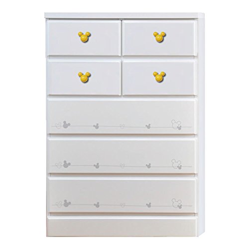 アルファタカバ ディズニー家具 キッズチェスト ミッキーチェスト 幅75cm 5段チョイスミッキー(ホワイト)取っ手イエロー