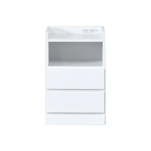 アルファタカバ ナイトテーブルコンセント付 2.5cm刻み選べるサイドテーブル 幅40cmイッセ(ホワイト)