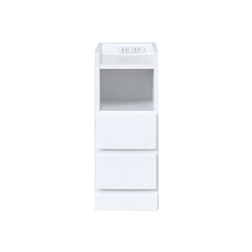 アルファタカバ ナイトテーブルコンセント付 2.5cm刻み選べるサイドテーブル 幅20cmイッセ(ホワイト)
