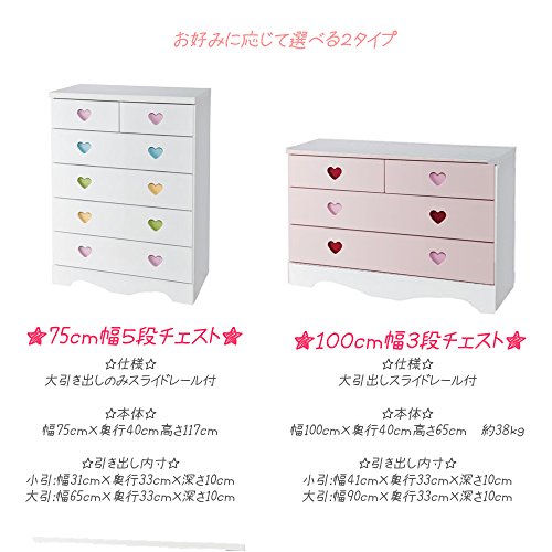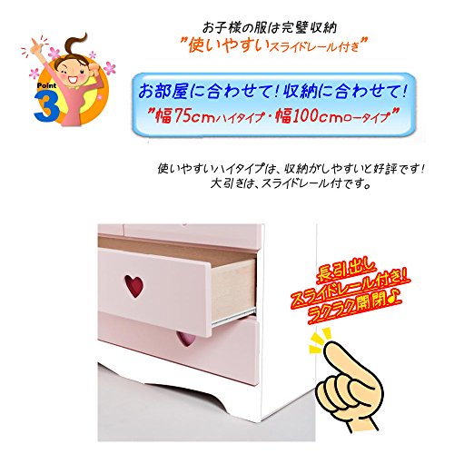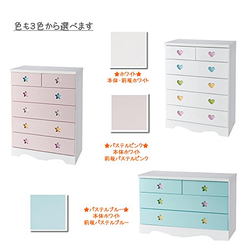 アルファタカバ 子供部屋に置きたいキッズチェスト ポップハート 幅100cm3段タイプ パステルブルー(取っ手ピンク)