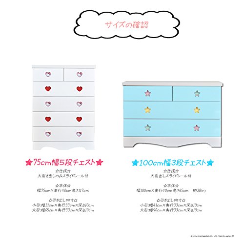 アルファタカバ 子供部屋に置きたいキッズチェスト サンリオリトルツインスターズスターチェスト 幅100cm3段タイプ パステルブルー