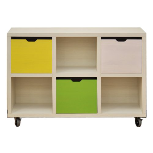 アルファタカバ キャスター付きシェルフフレンドお片づけボックス付き 120cm幅3×2(イエロー、グリーン、ピンク)
