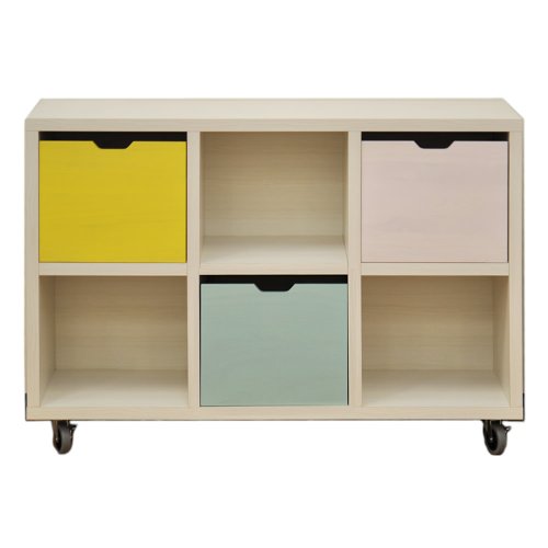 アルファタカバ キャスター付きシェルフフレンドお片づけボックス付き 120cm幅3×2(イエロー、ブルー、ピンク)