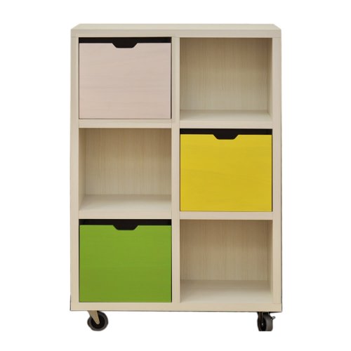 アルファタカバ キャスター付きシェルフフレンドお片づけボックス付き 80cm幅2×3(イエロー、グリーン、ピンク)