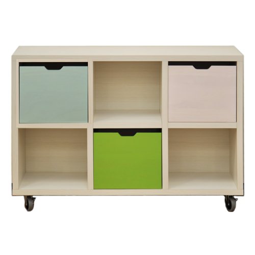 アルファタカバ キャスター付きシェルフフレンドお片づけボックス付き 120cm幅3×2(ブルー、グリーン、ピンク)