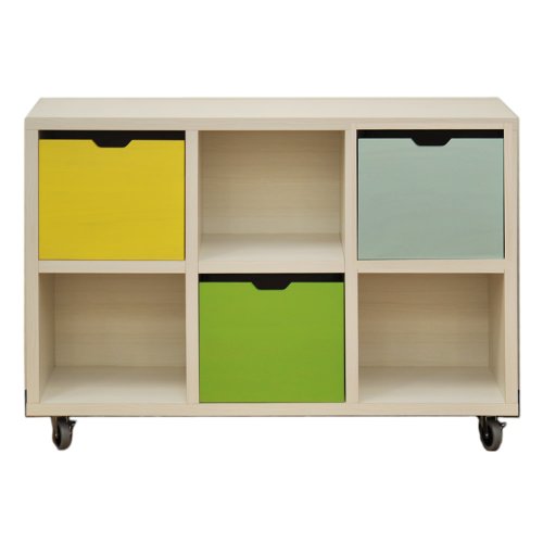 アルファタカバ キャスター付きシェルフフレンドお片づけボックス付き 120cm幅3×2(イエロー、グリーン、ブルー)