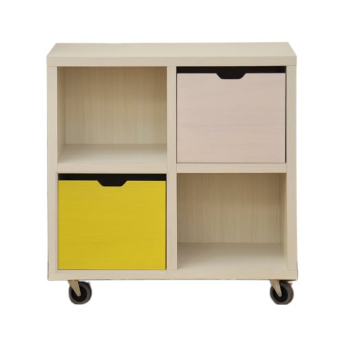 アルファタカバ キャスター付きシェルフフレンドお片づけボックス付き 80cm幅2×2 (イエロー、ピンク)