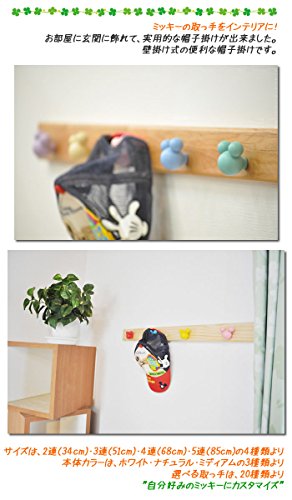 アルファタカバ ディズニー家具 壁掛けフックハンガーウォール 帽子掛け3連フックホワイト木目 ミッキーマウス取っ手(北欧タイプ)