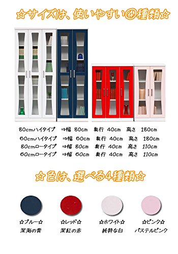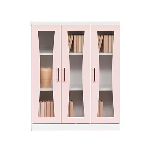 アルファタカバ 子供部屋用扉付カラフル書棚 マリリン80cm幅ロータイプ(パステルピンク)