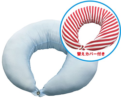 マルチに使える ベビー&ママクッション シムス 抱き枕 授乳 お座りサポート (シャーベットブルー(接触冷感)&替えカバー(キャンディーストライプ))