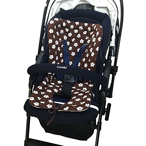 綿100% マルチに使える やわらか ベビーカー クッション (ブラウンフラワー)