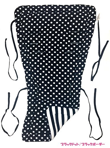 コットン 100% リバーシブル ベビーカークッション ベビーカー チャイルドシート 送料無料 ベビーチェア 綿 100 選べる 綿100% ハイチェア チャイルドシート クッション (ブラックドット/ブラックボーダー)
