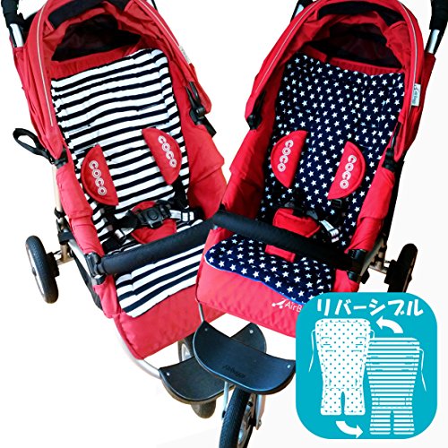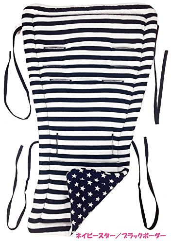 コットン 100% リバーシブル ベビーカークッション ベビーカー チャイルドシート 送料無料 ベビーチェア 綿 100 選べる 綿100% ハイチェア チャイルドシート クッション (ネイビースター/ブラックボーダー)
