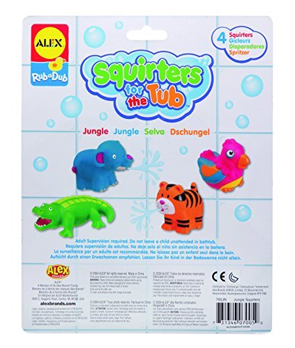 ALEX Toys - Bathtime Fun, Bath Squirters, Jungle, 700JN is a set of 4 soft squirters packed in a zippered PVC bag with handles. They are perfectly sized for little hands, soft enough if your toddler falls on them and rugged enough to hold up to multiple uses! Phthalate-free and safe to chew on! The squirters in this set include a tiger, parrot, alligator and elephant. All squirters are phthalate-free and baby and toddler safe. ALEX Bath toys are designed to turn the chore of bath time into fun time. We understand that when kids are having fun, they’re open to new experiences and learning. That’s why, in addition to the core ingredient of fun, we also sprinkle some learning and pretend play into our bath toys. They’ll have so much fun, they may not want to leave the tub! ALEX Toys - Bathtime Fun, Bath Squirters, Jungle, 700JN is recommended for age 6 months and up. ALEX Toys takes the mission of providing children with quality creative products that foster personal expression and build self-esteem to heart! ALEX products are currently sold in over 80 countries worldwide in specialty toy and retail shops. Visit www.amazon.com/alex-brands for more information on Alex Brands and our best-selling line of educational and entertaining products for kids.