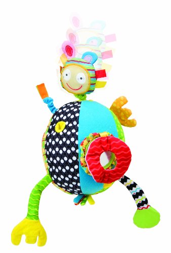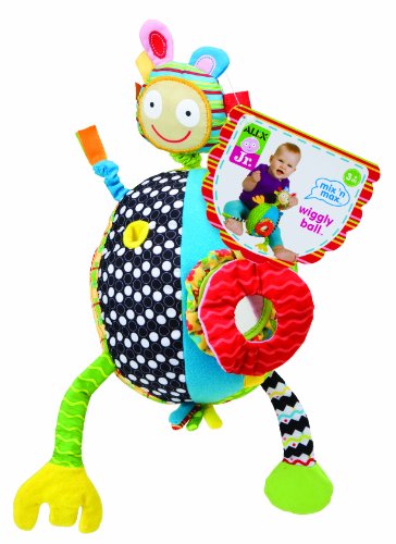 You will giggle as you pull Max's head and watch him wiggle Funny arms to stretch and crinkle, lots of shapes and textures to touch and a peek-a-boo mirror. All on a soft ball to toss and catch.