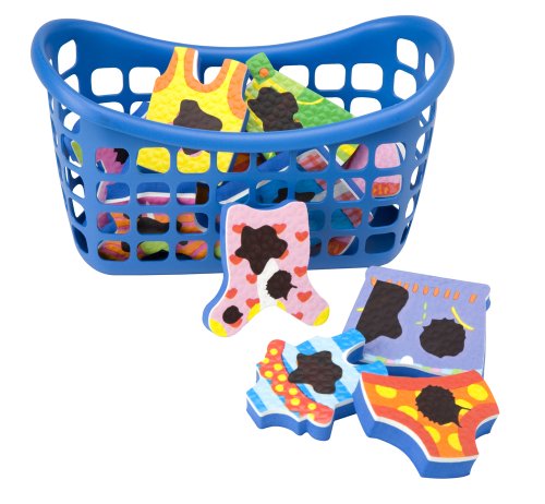 Just dip clothes in the warm water and watch stains disappear, This 12-piece set includes a laundry basket, Recommended for age 2 and up
