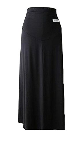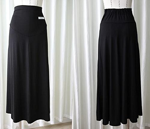 マタニティ ロング マキシ スカート ゆったり 楽ちん 折り返して 産後 も (ブラック)