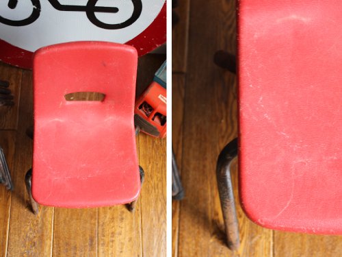 - イギリス(英国)アンティーク◇子供用チェア(赤色)/プラスチックイス/パイプイス/花台/踏み台(a0700115-3)