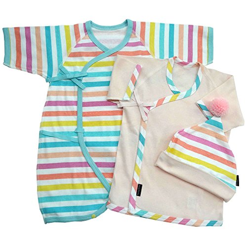 【新生児】アンナニコラ マルチボーダー肌着3点セット 50cm 新生児肌着:ピンク