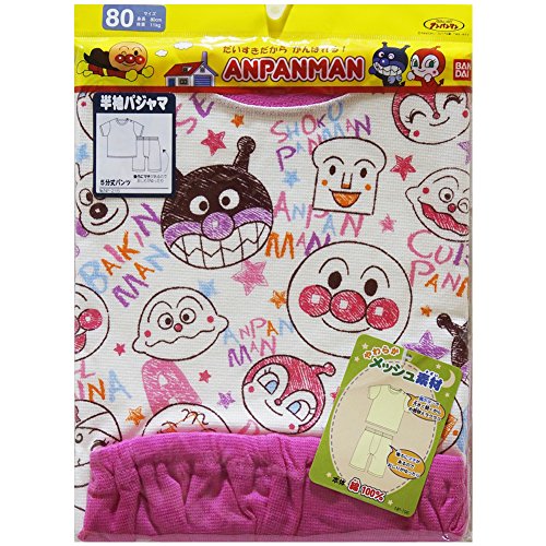 【本体綿100%】2018年 夏物 アンパンマン メッシュ 線描きプリント 半袖パジャマ Anpanman ピンク◇90cm