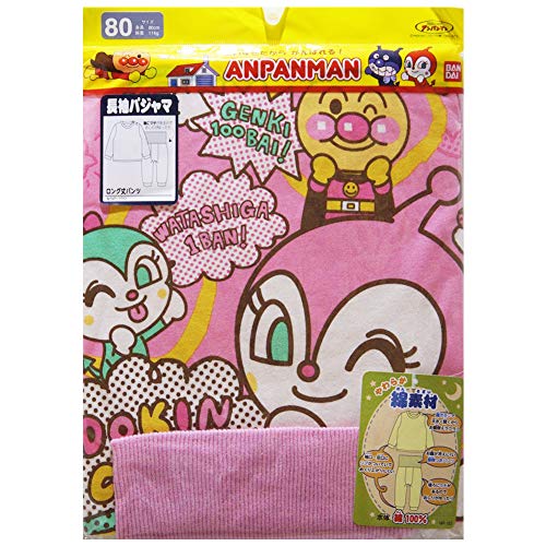 【本体綿100%】2018年 秋物 アンパンマン スムス パネル柄 腹巻付き 長袖パジャマ Anpanman ピンク◇95cm