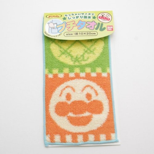 アンパンマン&メロンパンナちゃん プチタオル 半分におるだけだから、小さなお子様も簡単にたためます。園児のポケットにもしまいやすい、コンパクトサイズのタオル 名前が書けるネームつき 綿100% 中国製 サイズ:約10×20cm(ミニタオルの半分サイズ)